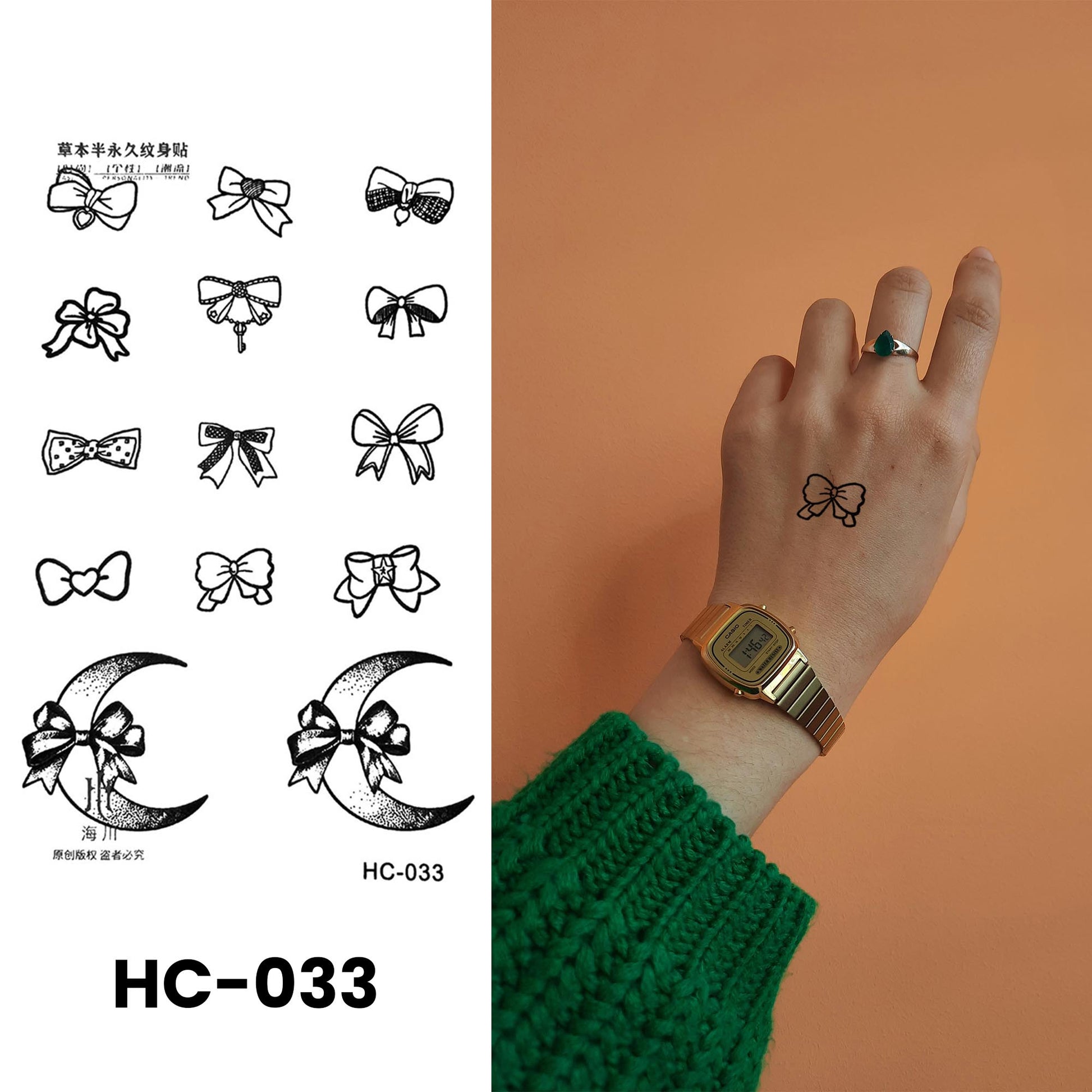 Meet your new favorite way to fake a tattoo. No needles, no regrets, just good vibes. The HC-033 is here to help you switch up your style whenever you want. It's semi-permanent (yep, it actually lasts), waterproof, and made with plant-based ingredients.